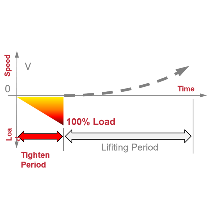 Based on the increment of tension, the crane automatically calculates the tightening phase, during which there is almost no lifting motion. Once the tension stabilizes, the hook begins to lift, preventing sudden large loads from impacting the crane and the building structure.