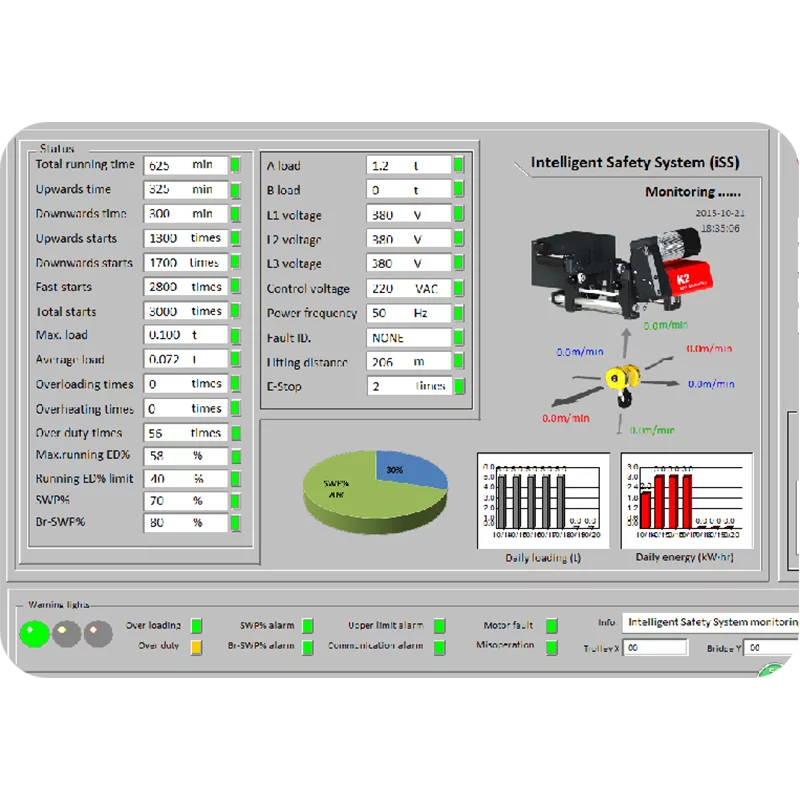 Remaining Safe Working Period (SWP%) for Hoisting Mechanism: Precisely calculates the remaining service life of the hoisting mechanism, helping users plan maintenance in advance.